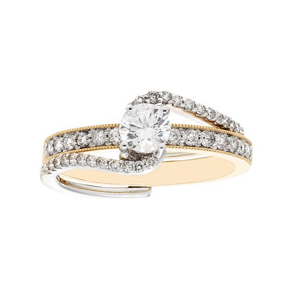 Two Tone 14k Gold 1 Carat T W Igl Certified Diamond Interlock Engagement Ring Set White Gold Female Wedding Rings