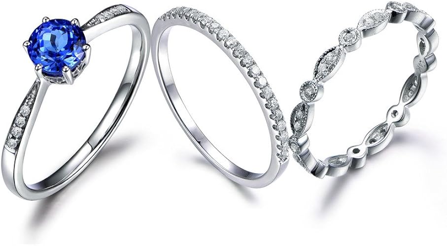 Amazon Com Myraygem Wedding Ring Sets 3pcs Blue Tanzanite Bridal Ring Set 7mm Round Cut Stone 14k White Gold 6 Prongs Promise Bridal Band Sets Myraygem Jewelry Wedding Ring Diamond Size Cut
