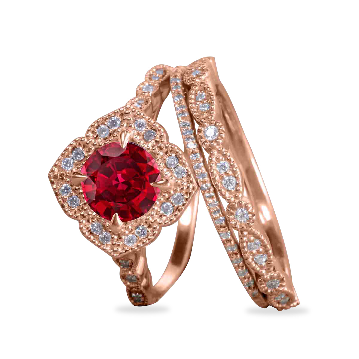 Graceful Diamond Bridal Set 2 Carat Round Cut Diamond On 18k Gold Jeenjewels Rose Gold Wedding Rings With Black Diamonds