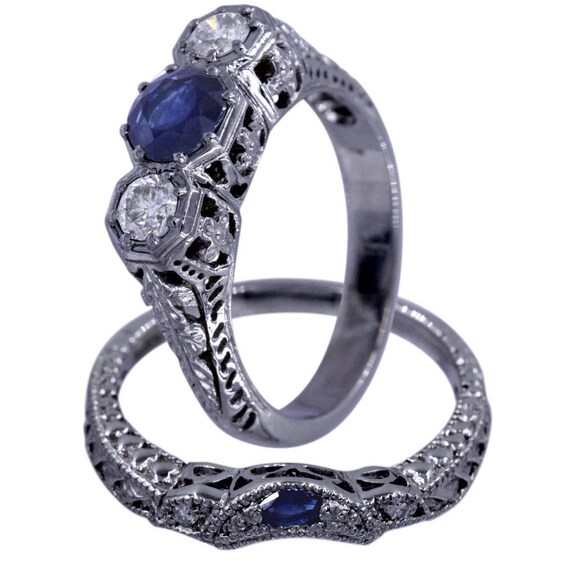 Blue Sapphire Wedding Ring Set Sapphire Engagement Ring Art Etsy Wedding Bands Dublin Ireland
