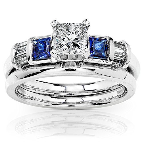 We use fine natural yellow blue and pink sapphires. 10k white gold blue sapphire white created sapphire and lab grown diamond 3 stone bridal women engagement wedding ring set 093 cttw 32499 324. Sapphire wedding ring sets are the height of classic elegance.