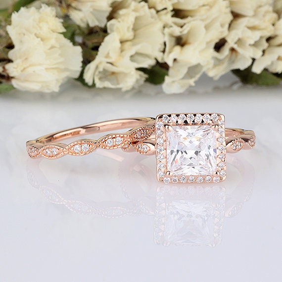 There are 5846 cz wedding ring set for sale on etsy and they cost 6522 on average. The most common cz wedding ring set material is metal. Lab ruby engagement ring rose gold engagement ring vintage etsy.