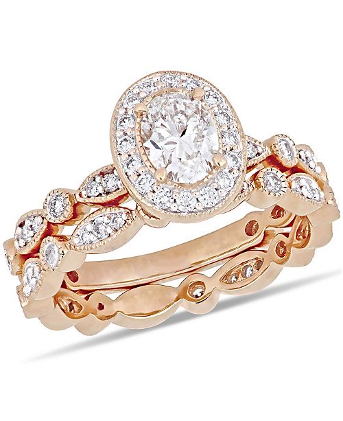 Macy S Certified Diamond 1 Ct T W Oval Vintage Halo Bridal Set In 14k Rose Gold Reviews Rings Jewelry Watches Macy S Womens Set White Gold Wedding Rings
