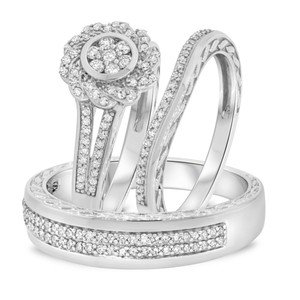 Ebay Ad 10k White Gold Over His Her Men Women Trio Diamond Ring Set Wedding Bridal Wedding Ring Bands Rings Mens Wedding Bands Engagement Wedding Ring Sets Second Hand Wedding Rings For Sale Uk