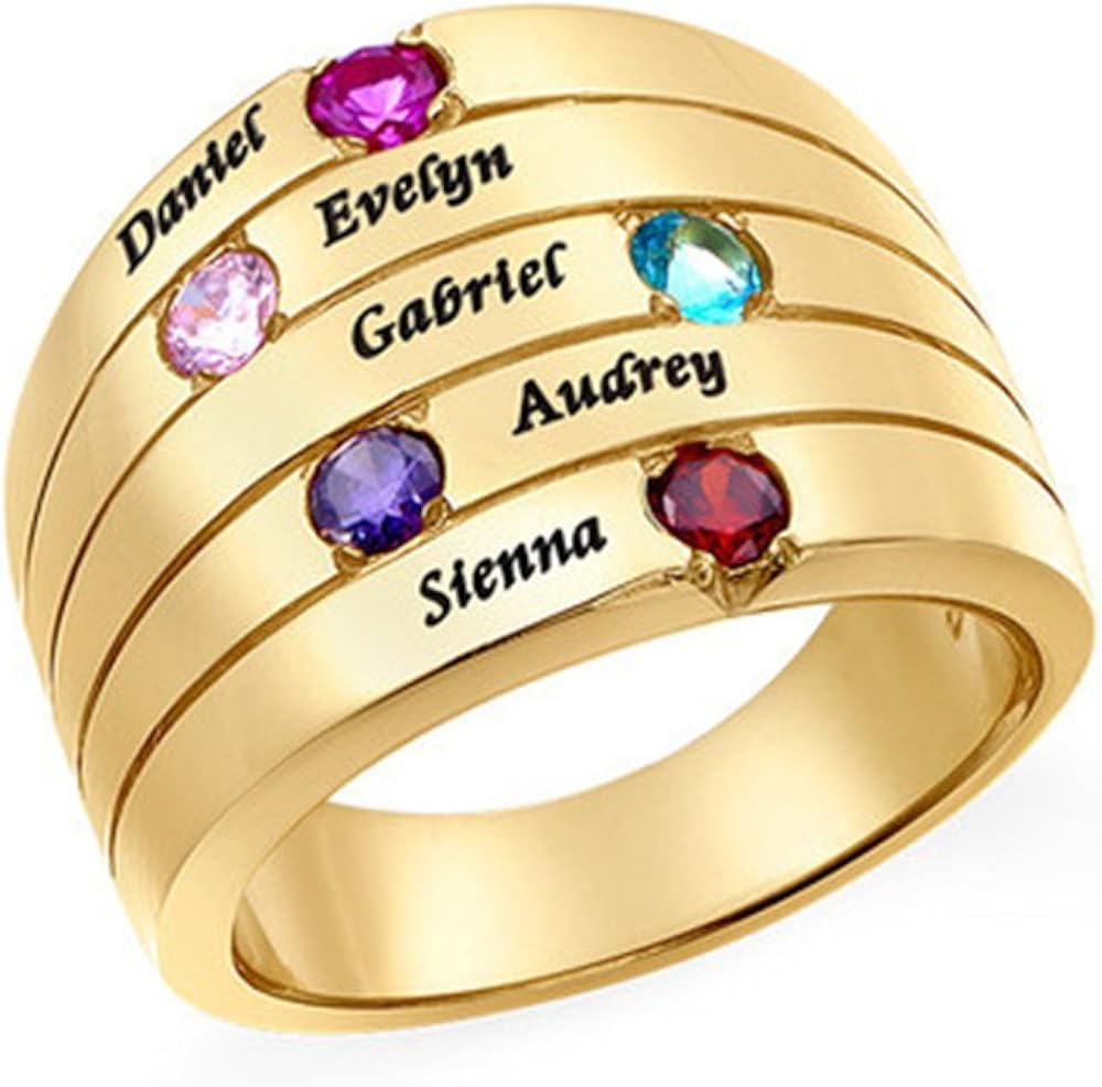 Amazon Com Xxi0c2sd2s Personalized 5 Name Engagement Rings Customized Names Engraved Birthstones Wedding Rings For Women Jewelry Wedding Rings Platinum Womens