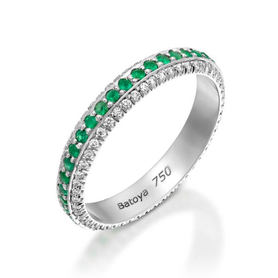 Emerald Wedding Ring Green Anniversary Ring Emerald Gemstone Etsy Pave Diamond Ring With Wedding Band