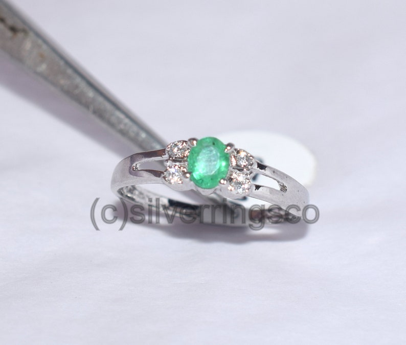 Dainty Emerald Ring May Birthstone Ring Emerald Diamond Etsy Pave Diamond Ring With Wedding Band