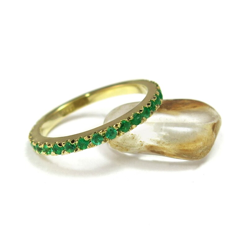 Natural Emerald Wedding Ring Band Half Eternity Diamond Etsy Emerald Wedding Rings Rose Engagement Ring Gold Diamond Wedding Band Pave Diamond Ring With Wedding Band