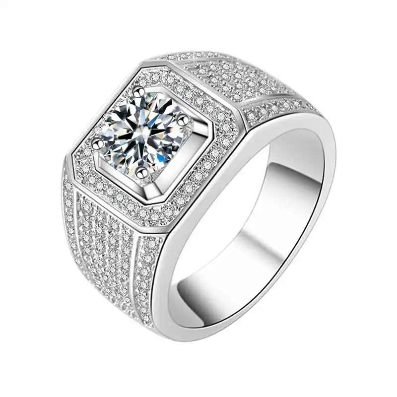 14k White Gold 2 Carats Diamond Ring For Men Male Shine Aaa Zircon Big Full Diamond Finger Rings Wedding Engagement Fine Jewelry Aliexpress Black Diamond Rose Gold Wedding Rings