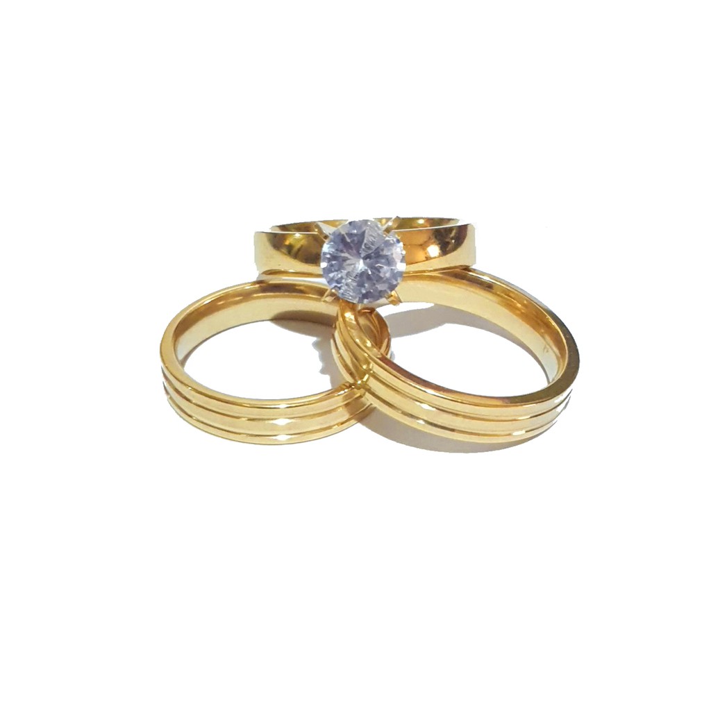 Rings 3 In 1 18k Gold Plated Couple Wedding Ring With Classic Groove Design Engagement Ring Shopee Philippines 24 Karat Gold Wedding Ring