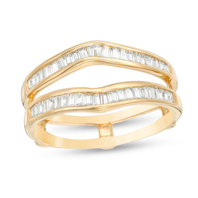 3 8 Ct T W Baguette Diamond Chevron Solitaire Enhancer In 14k Gold Wedding Bands Wedding Zales Matching Rose Gold Wedding Rings