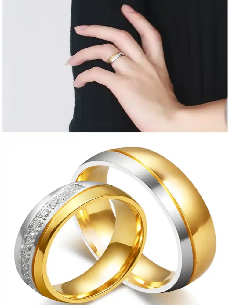 Wedding Ring Set For Him Her Men Women Couple Stainless Steel White Gold Engagement Band Cubic Zirconia Diamond Jewelry Gifts Aliexpress Diamond Wedding Ring Vector Png