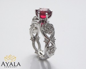 14k Solid White Gold Ruby Ring Engagement Ring Flower Ring Gold Wedding Rings Ebay White Gold Wedding Band And Engagement Ring