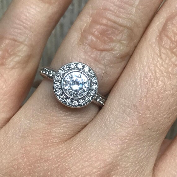 15 ctw round classic halo ring wedding ring man made diamond simulants half eternity ring engagement ring promise ring sterling silver. Double halo engagement ring sterling silver halo wedding ring rhodium plated double halo bridal ring silver engagement rings halo ring. The most common halo ring material is metal.