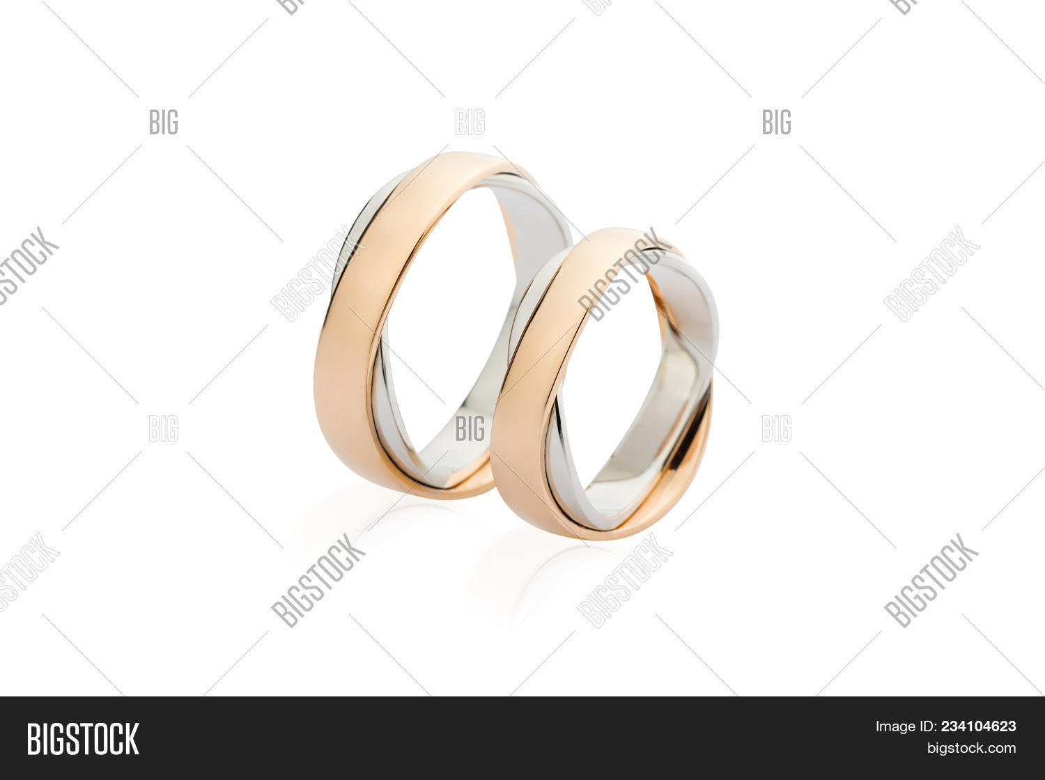Two White And Rose Gold Wedding Rings Isolated On White Background Silver And Gold Rings Intertwine 234104623 Image Stock Photo Kay Jewelers Mens Wedding Rings