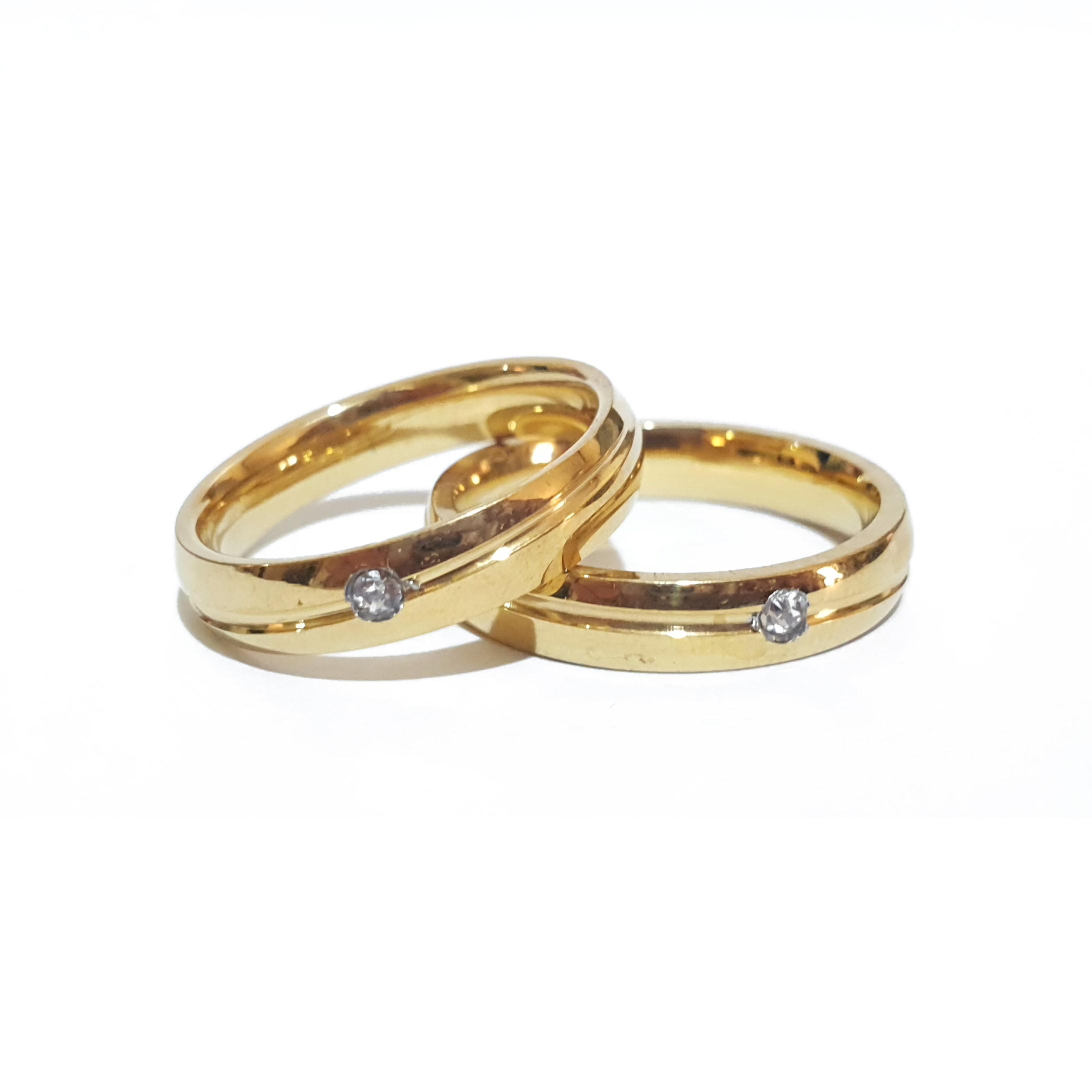 3 In 1 18k Gold Plated Couple Wedding Ring With Single Diamond Zro2 Etched Groove Engagement Ring Lazada Ph White Gold Wedding Bands For Her With Diamonds