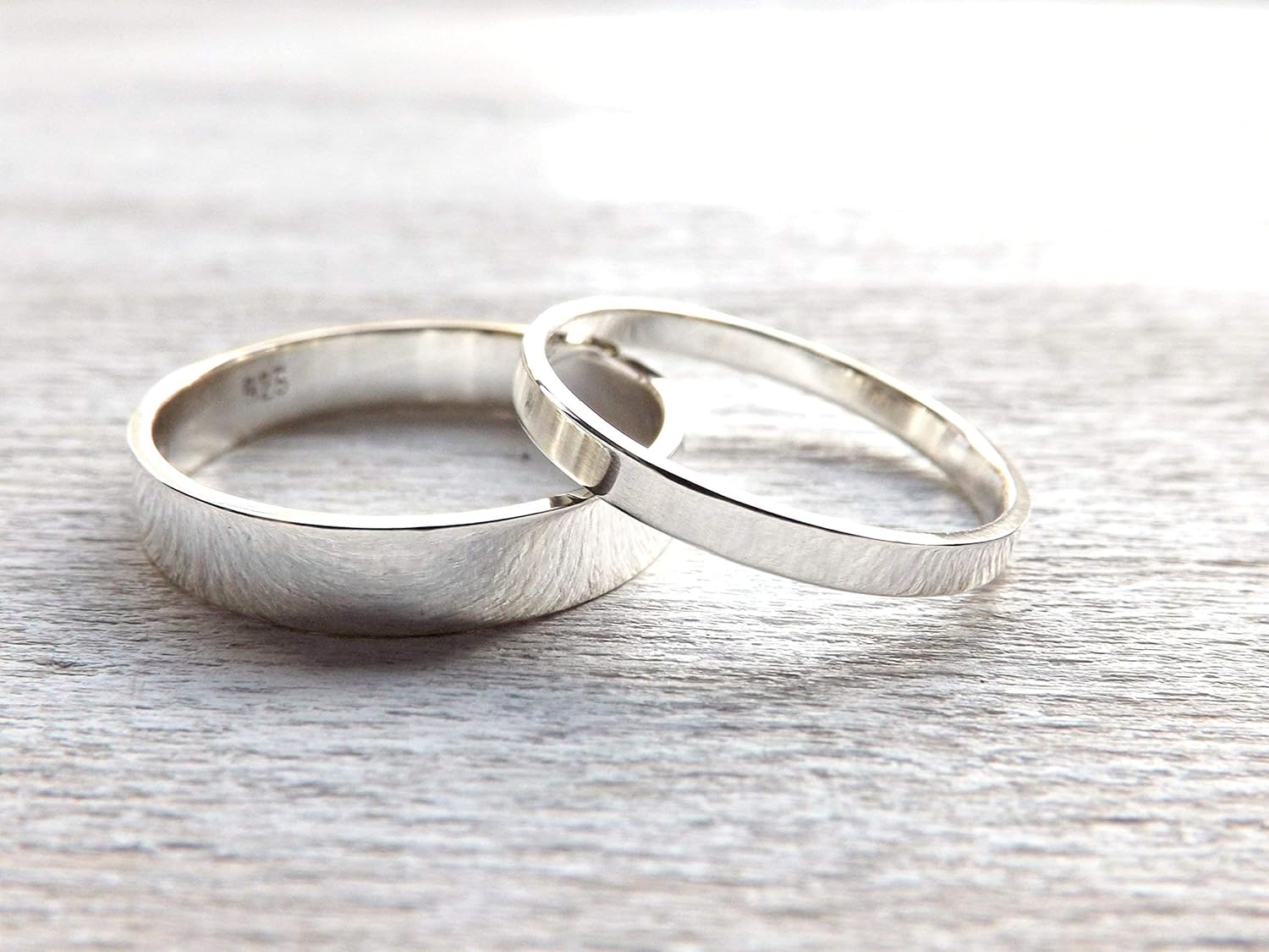 Amazon Com Flat Silver Ring Set Slim And Simple Matching Wedding Bands His And Hers Promise Rings Silver Wedding Rings Budget Wedding Rings Handmade White Gold Wedding Bands For Her With Diamonds