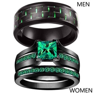 Couple Rings Titanium Steel Mens Wedding Band Green Cz Womens Wedding Ring Sets Ebay White Gold Matching Engagement And Wedding Rings