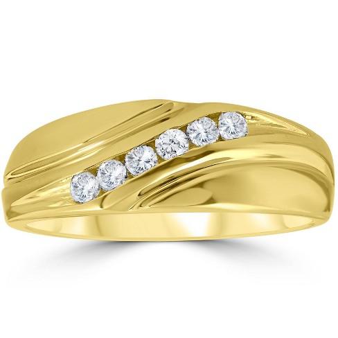 14k gold wedding ring set. 10k yellow gold round diamond 7 stone channel set wedding band mens ring 12 ct. This striking mens wedding ring in yellow gold features sixty eight round cut diamonds depending on ring size. This 14k or 18k yellow gold mens eternity band is 6 millimeters wide and features eighteen round cut diamonds in a channel setting and high polished satin finish between rows of three round cut diamonds.