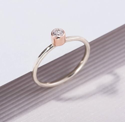 Round Cut Mixed Metal Twist Single Diamond Engagement Ring In 14k Rose Gold Fascinating Diamonds Thin Wedding Rings Etsy