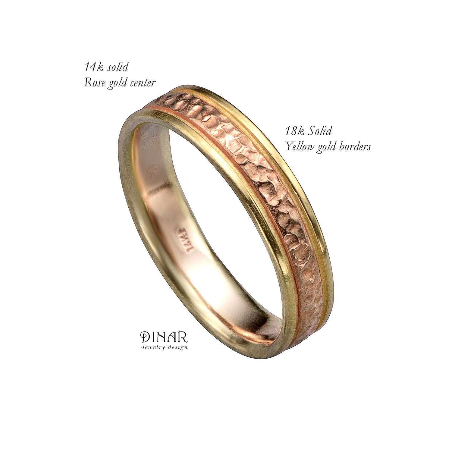 Amazon Com 18k Mixed Metal Hammered Rustic Two Tones Men Ring 18k Yellow Gold And 14k White Rose Gold Classic Wedding Band For Man Comfort Fit Handmade Wedding Rings Etsy Uk