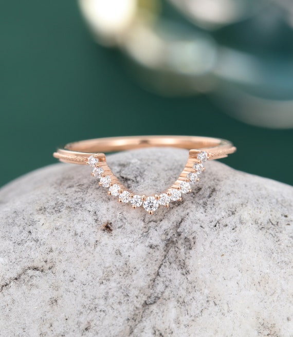 Curved Wedding Band Women Rose Gold Moissanite Wedding Ring Etsy Titanium Wedding Rings Dubai