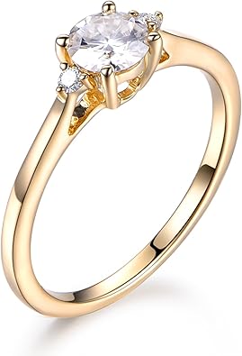 Moissanite Engagement Ring Round Cut 14k Yellow Gold Plain Wedding Band Solitaire Bridal Amazon Com Wedding Rings For Sale Za