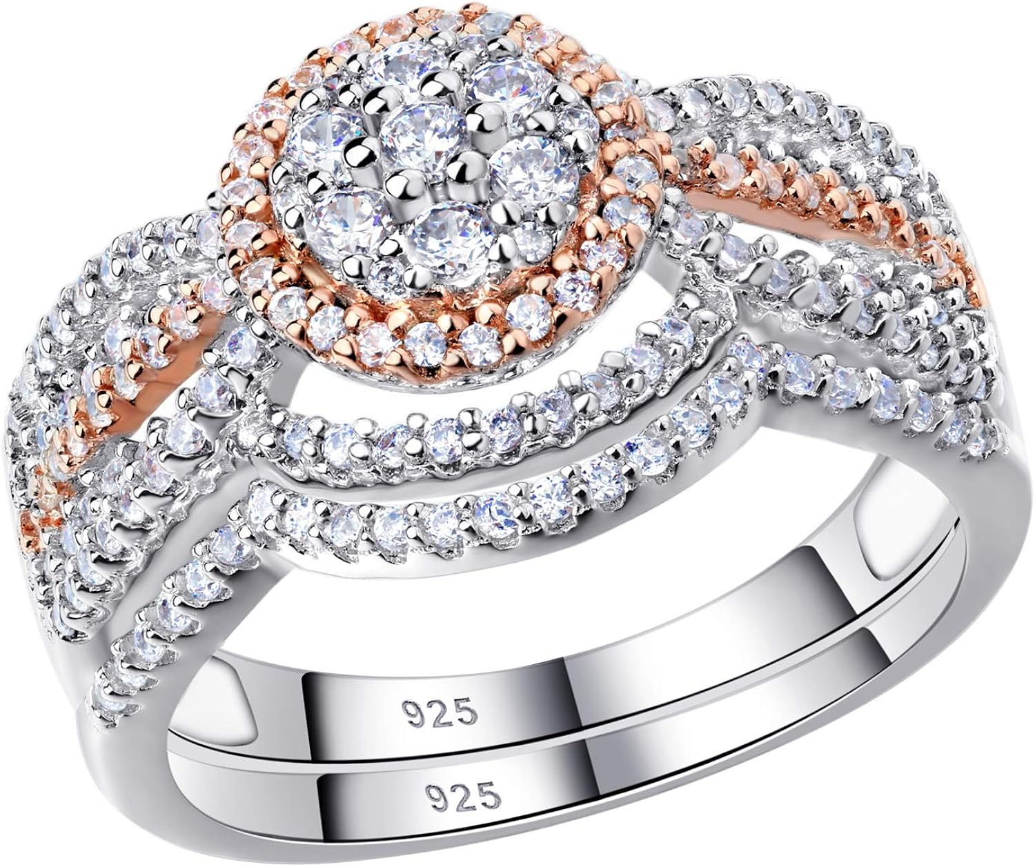 Amazon Com Newshe Wedding Rings For Women Engagement Ring Sets Rose Gold 925 Sterling Silver Cz 1 7ct Size 7 Jewelry Oval Diamond Engagement Ring And Wedding Band