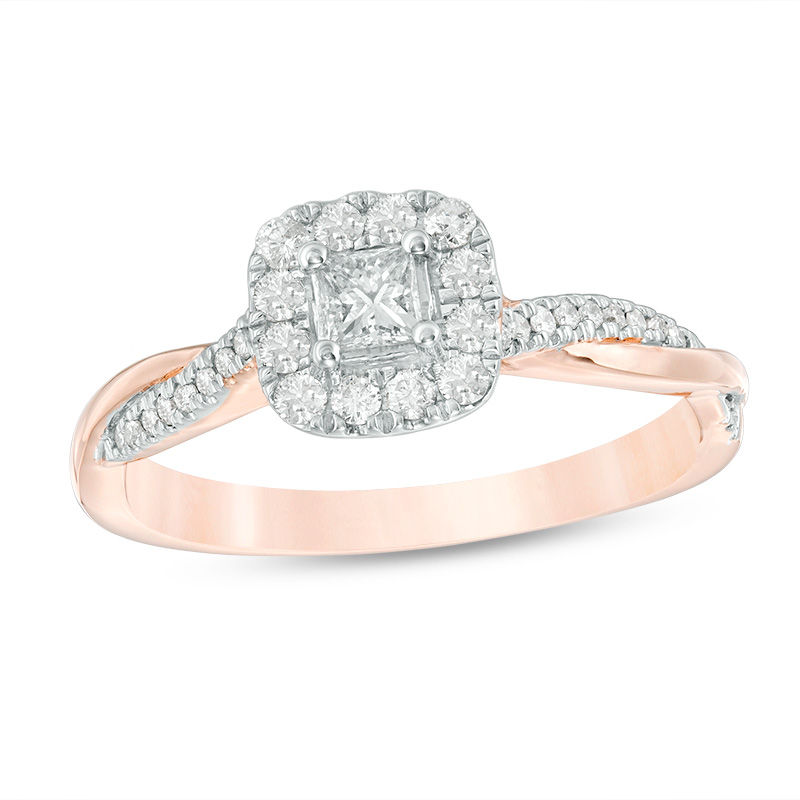 3 8 Ct T W Princess Cut Diamond Frame Twist Engagement Ring In 10k Rose Gold From This Moment Collections Zales Outlet Tanishq Wedding Rings For Female