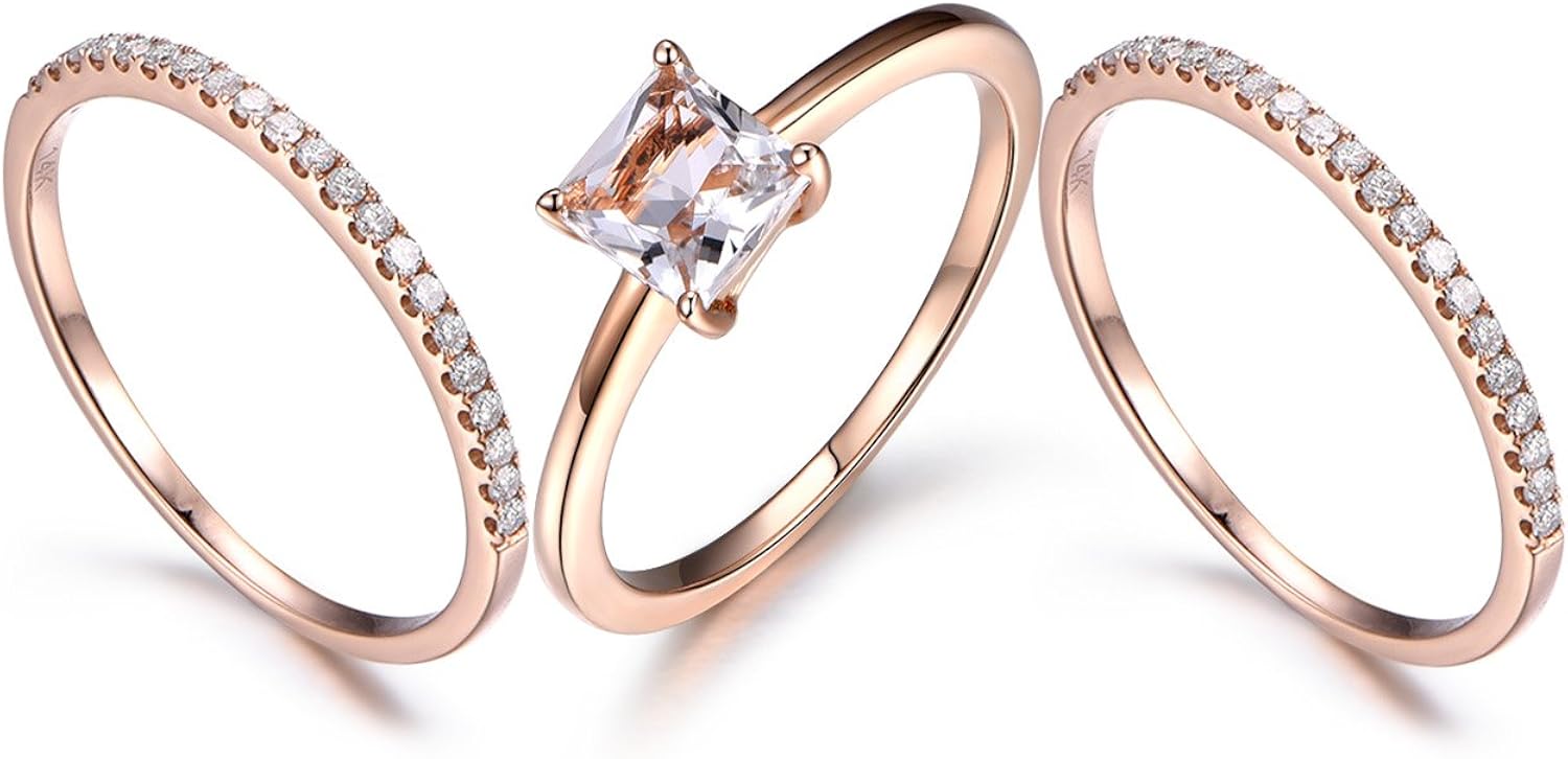 Morganite Ring Set 6 5mm Princess Cut Morganite Engagement Ring Rose Gold Diamond Wedding Band Thin Amazon Com White Gold Wedding Rings For Him And Her