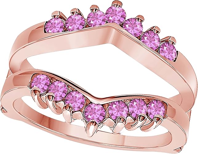 Amazon Com Silver Gems Factory 1 2 Ct Double Wedding Band Ring Enhancer Guard With Pink Sapphire 14k Rose Gold Plated Jewelry Wedding Bands For Sale Johannesburg