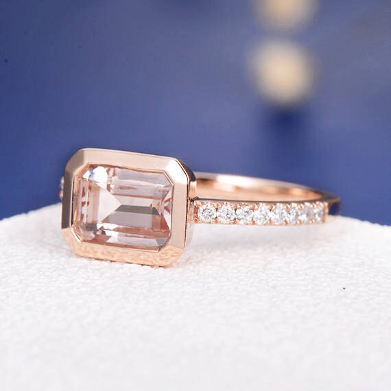 Bezel Set Morganite Engagement Ring Rose Gold Wedding Ring Etsy White Gold Diamond Wedding Rings Sets