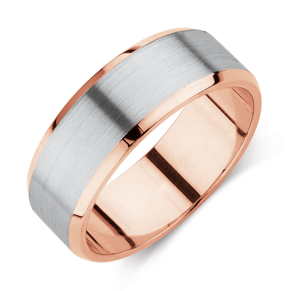 8mm Brushed Grey Rose Gold Tungsten Mens Wedding Band Wedding Bands For Emerald Cut Solitaire
