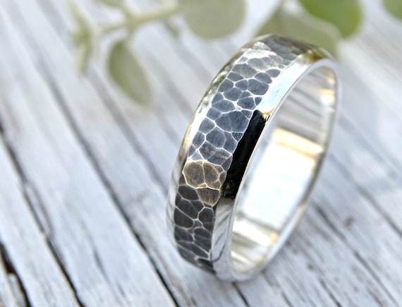 Mens Wedding Band Silver Wedding Ring Hammered Silver Ring Etsy Mens Wedding Rings White And Yellow Gold