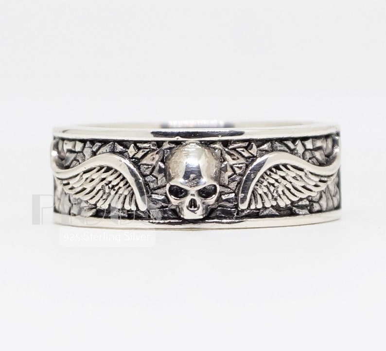 Wings Skull Ring Skull Ring Band Biker Oxidized Skull Ring Etsy Wedding Rings For Sale In Nigeria