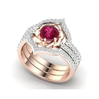 Women Fashion 3 In 1 Rose Gold Rings Luxury Crystal Rhinestone Wedding Band For Bride Engagement Ring Sets Party Cz Jewelry Lazada Wedding Rings For Sale Cheap
