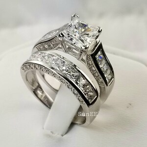 14k Gold And Moissanite Stone Engagement Ring Thin Wedding Ring In Solid White Gold 2456412 Weddbook Matching Cheap Wedding Rings Sets For Him And Her