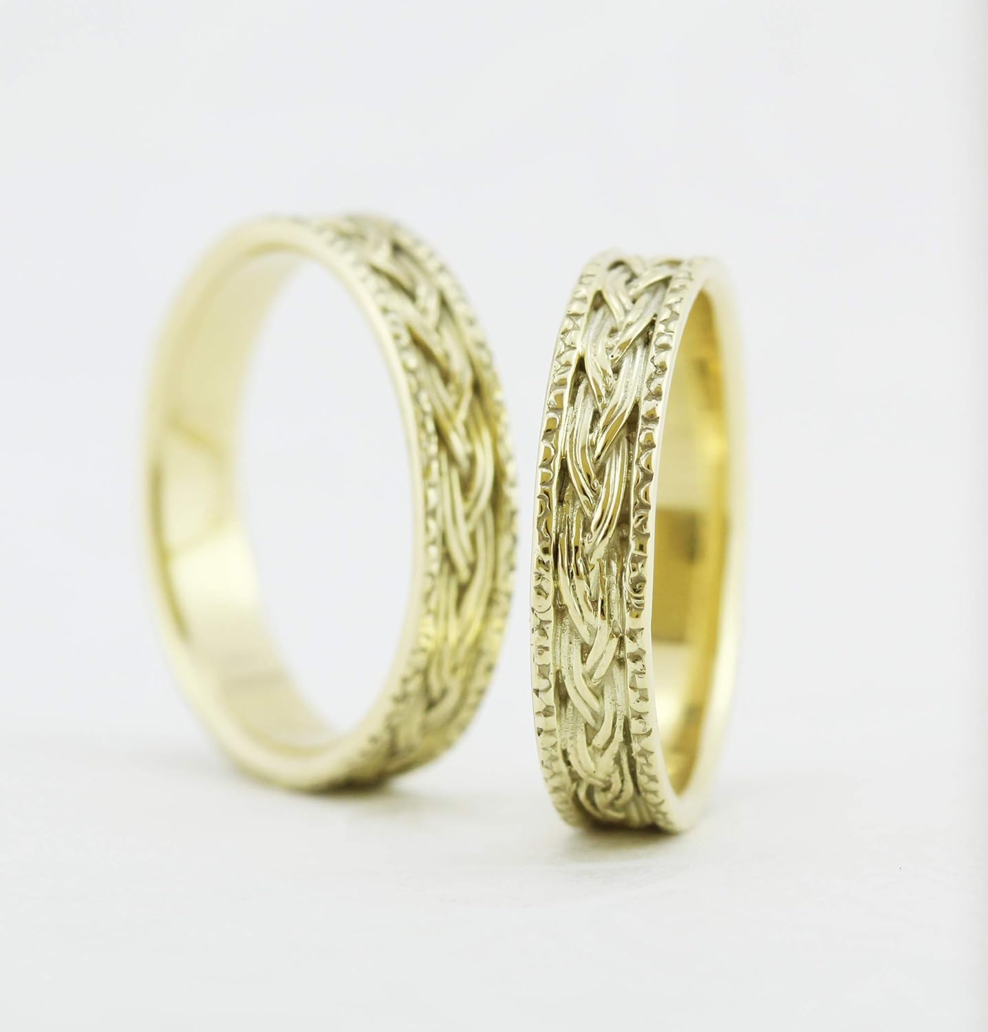 Handmade Unique Hammered Textured Braided Pattern Gold Matching Meaningful Spiritual Wedding Bridal Bands Rings Set For Her Unisex Him Hers And His Couples Amazon Ca Handmade Wedding Rings Gold With Diamonds