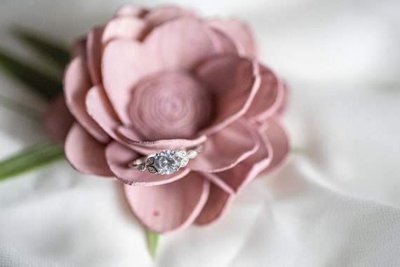 Vintage Unique Flower Vintage Wedding Set Diamond Gold Ring Etsy Engraved Personalized Wedding Rings