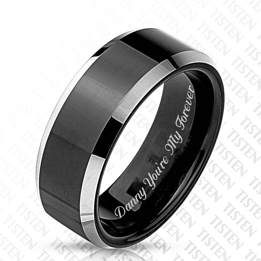 Amazon Com Custom Engraved Men S Tungsten Titanium Wedding Band Two Tone Black And Silver Boys Monogrammed Customized Friendship Ring Personalized Ships From Usa Office Products Rose Gold And Platinum Wedding Rings