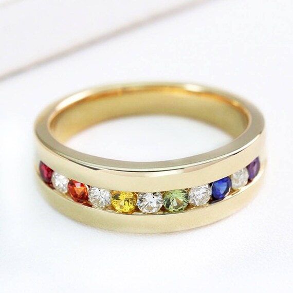 Gay Valentine Diamond Rainbow Sapphire Channel Set Ring Etsy Wedding Rings For Sale Cheap