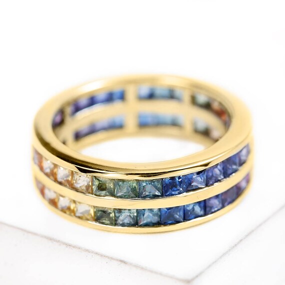 Gay Valentine Rainbow Sapphire Full Eternity Band Double Row Etsy Wedding Rings For Sale Cheap