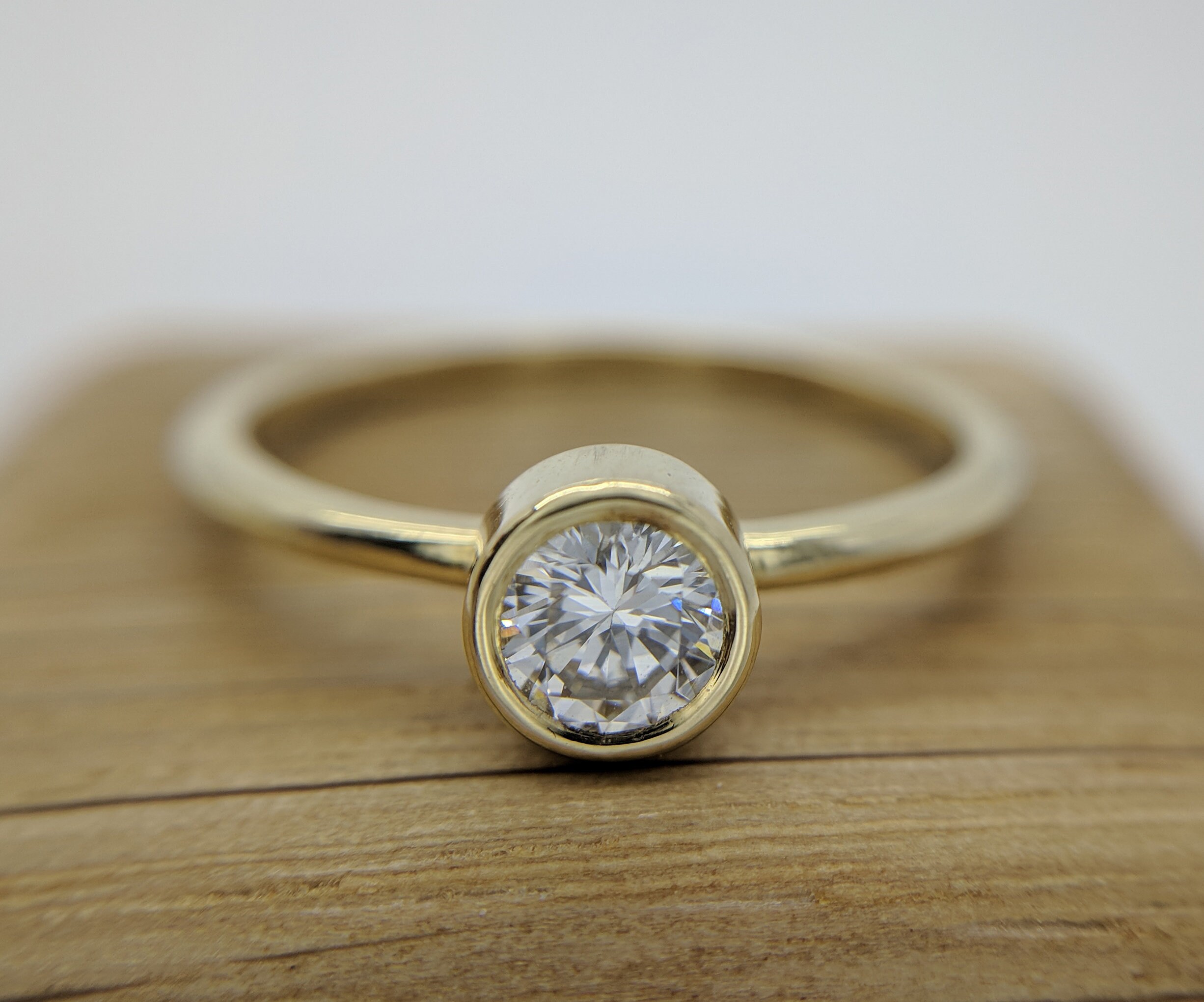 Round Diamond Solitaire Bezel Set Low Profile Thin Dainty Rose Gold Ring Engagement Bridal Promise Gift Ring Wedding Rings For Sale Used