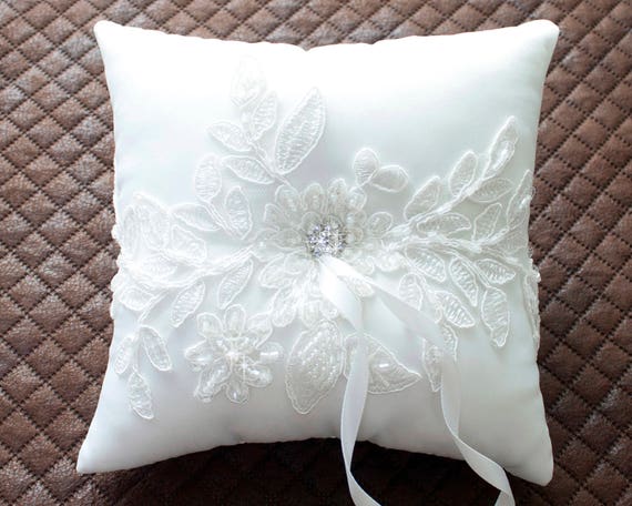 Small White Wedding Pillow With Lace Decoration Ring Pillows Etsy Wedding Rings His And Hers Matching Sets Cheap