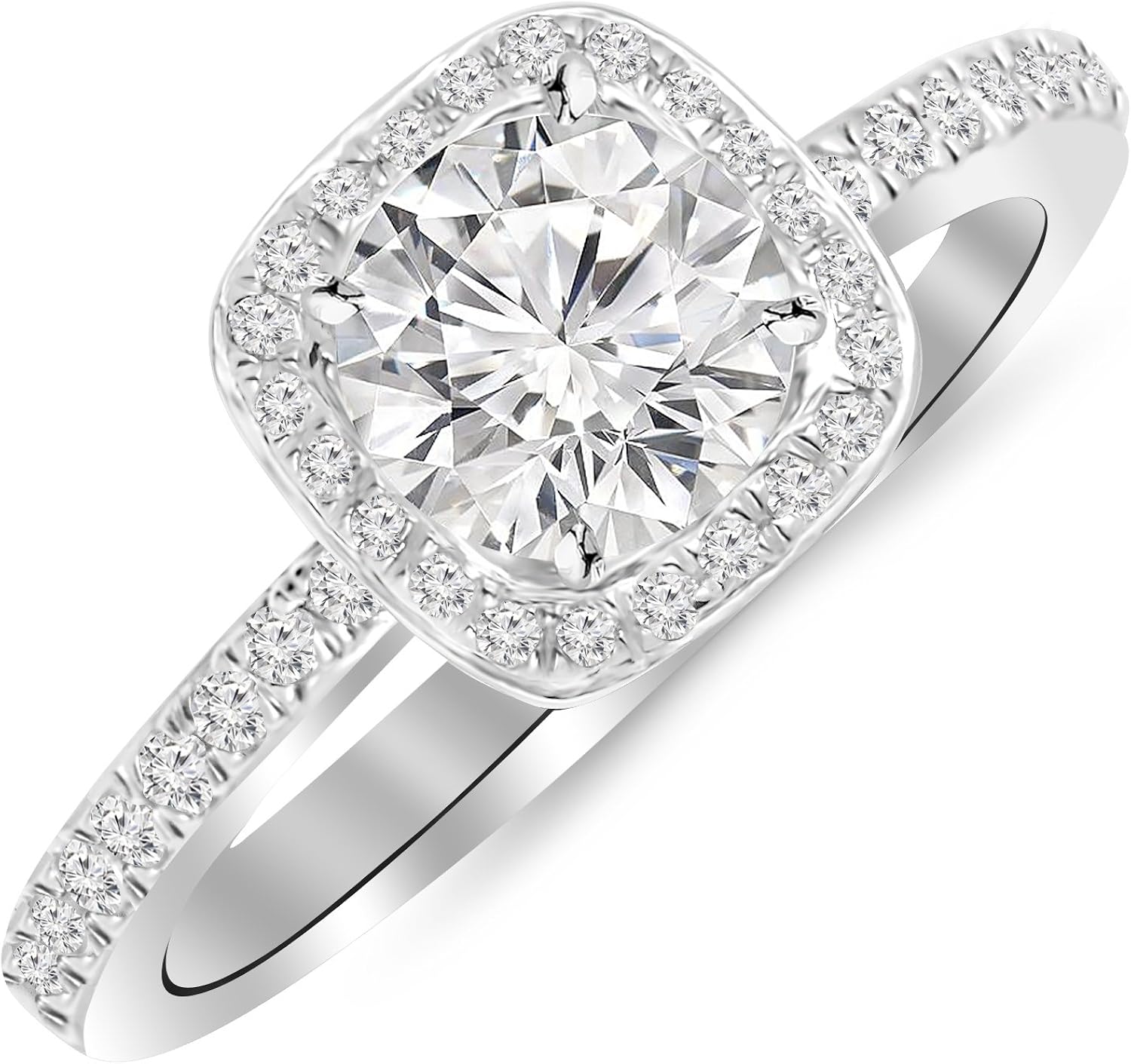 0 91 Carat 14k White Gold Classic Halo Style Cushion Shape Diamond Engagement Ring With A 0 60 Carat H I I2 Center Amazon Com Wedding Rings With Names Engraved India