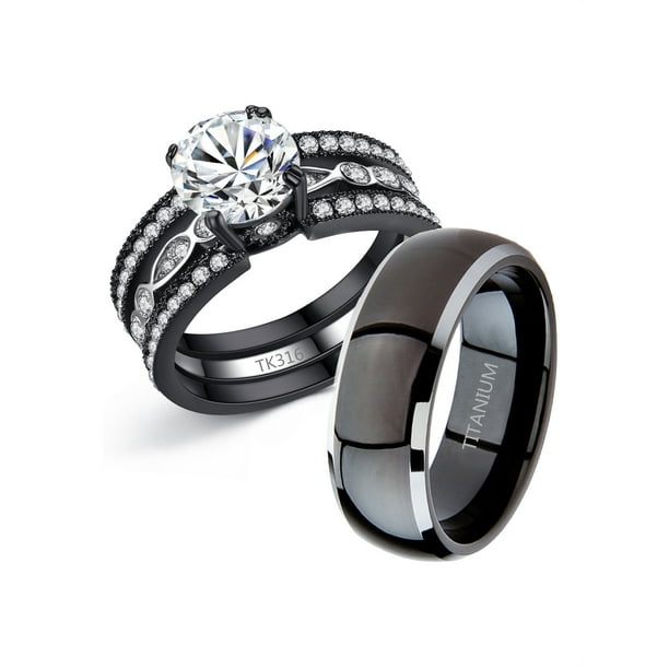 Devuggo Devuggo Couple Rings Black Men S Titanium Matching Band Women Cz Stainless Steel Engagement Wedding Sets Walmart Com Walmart Com Rose Gold Wedding Band And Engagement Ring Set