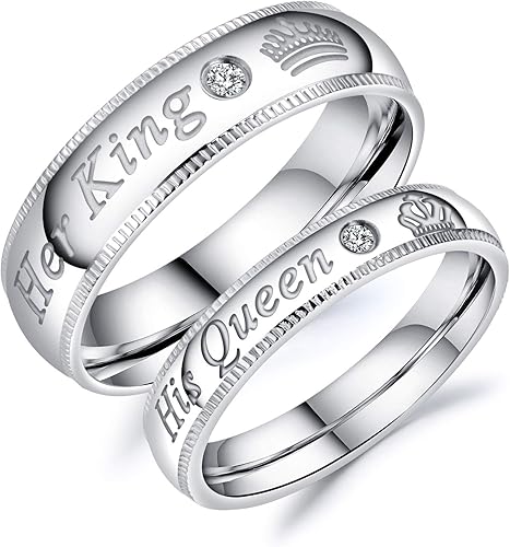 Moniya His Queen And Her King Stainless Steel Cz Couple Ring For Women Men Silver Tone Wedding Band 2pcs Amazon Com Rose Gold Wedding Band And Engagement Ring Set