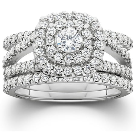 1 1 4ct Diamond Engagement Cushion Halo Wedding Ring Trio Set 10k White Gold Walmart Canada Ernest Jones Wedding And Engagement Rings
