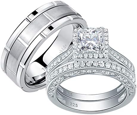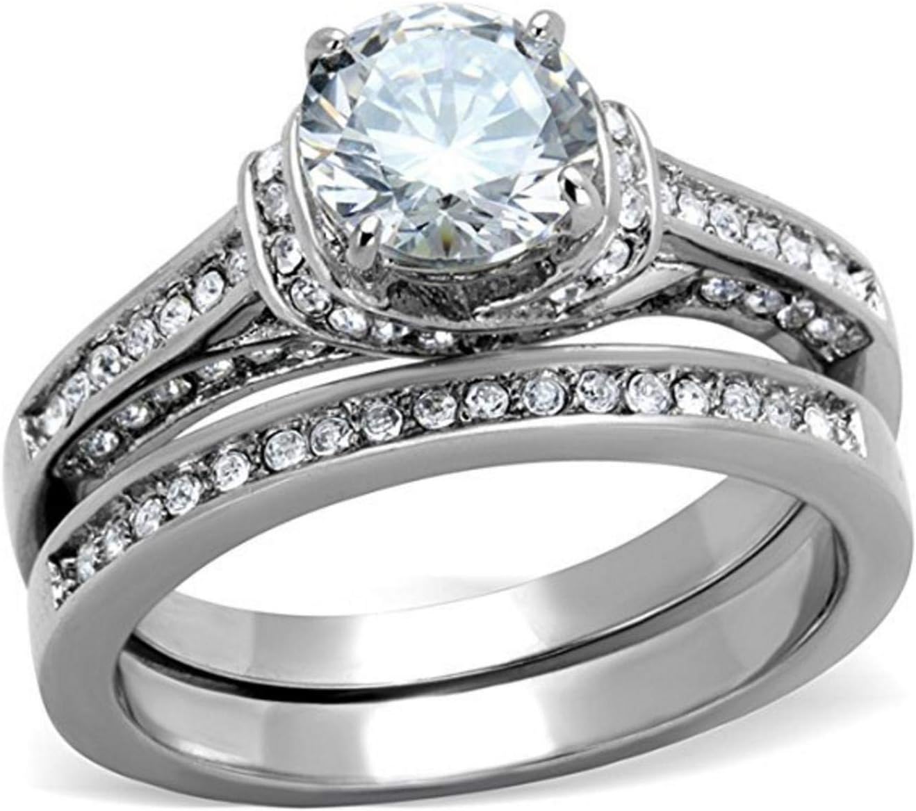 2 75 Carats Classic Style Stainless Steel Round Cut Cubic Zirconia Bridal Wedding Rings Set Price In Uae Amazon Uae Kanbkam White Gold Unique Wedding Rings Design