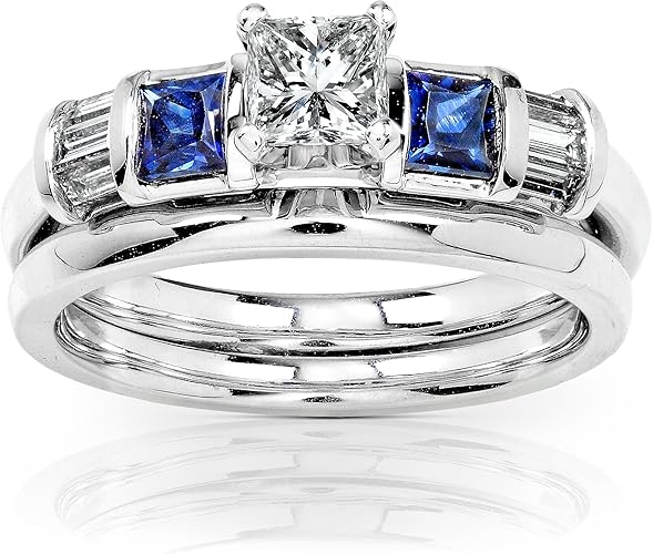 Amazon Com Kobelli Blue Sapphire Diamond Wedding Rings Set 3 4 Carat Ctw In 14k White Gold Jewelry Wedding Rings Couple Set Gold